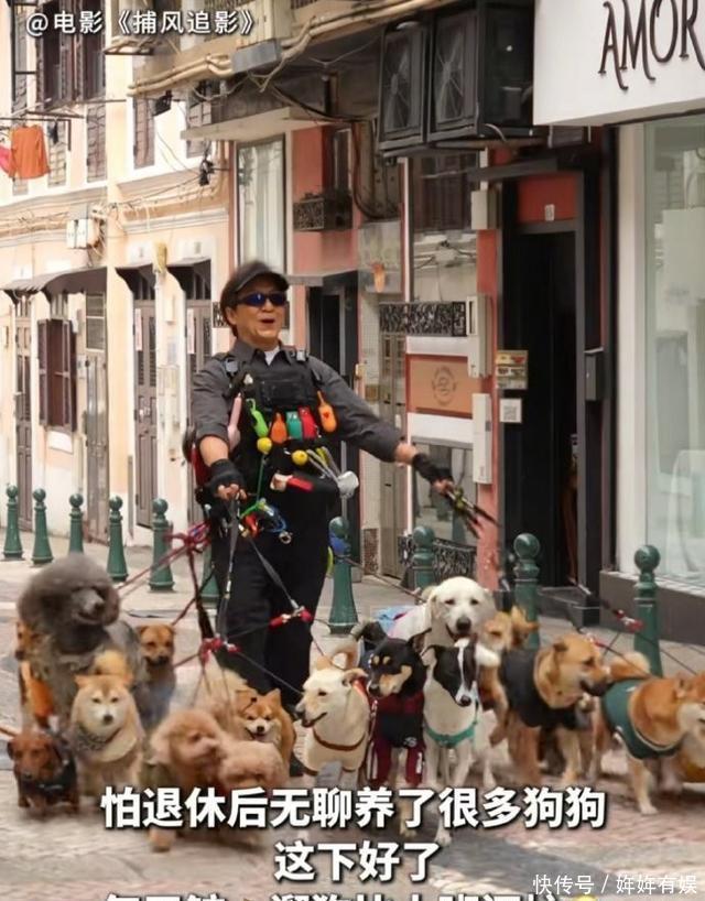 02热血老骥,用实力击碎年齿标尺 在《捕风追影》中,成龙塑造的黄德忠一角,具有猛烈的现实冲击力。他已从警队退休,正常糊口接地气,以致开场戏等于牵着千般各样的宠物狗去遛。