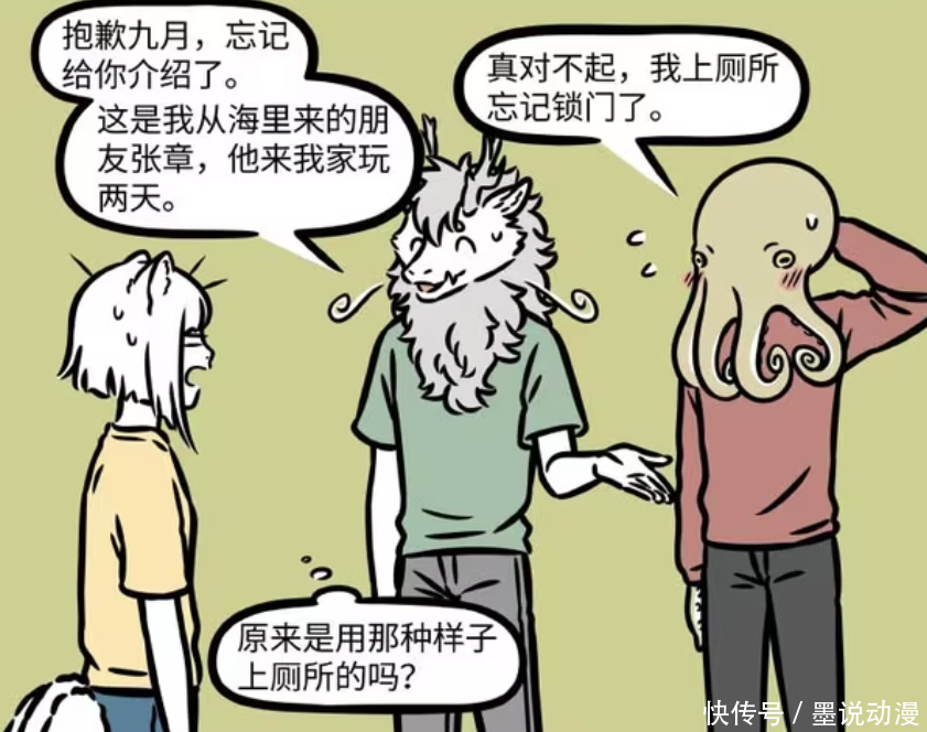 敖烈跟九月对不起,他健忘告诉她,家里还有其他来宾。这个东谈主即是张章,也就是章鱼精。张章来自海洋,也可以化为东谈主形,这两天王人在敖烈家玩。张章暗意对不起,上茅厕的时候,健忘锁门。九月是被吓得够呛,还好正常也没少受到惊吓,是以还承受得住。