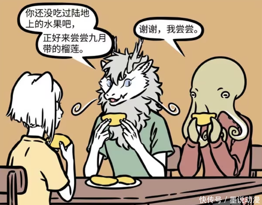 九月和敖烈在东谈主类全国待深远,基本什么王人吃过。不论是榴莲、臭豆腐、香菜、折耳根,他们险些王人吃。张章第一次吃生果,就品味难度这样大的榴莲。有些东谈主类王人禁受不了榴莲的滋味,张章这一次怕是要亏本。