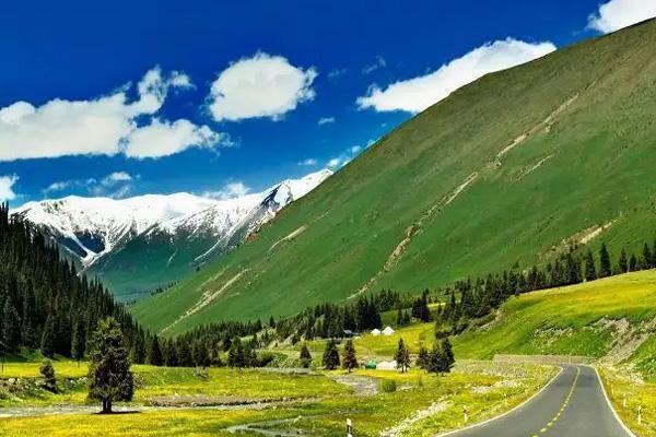 5、风物脾气:一起征象是充满生机的绿,有盘山路可看攀山而生的雪岭云杉;有平坦径直的草原公路,可赏风吹草低见牛羊。