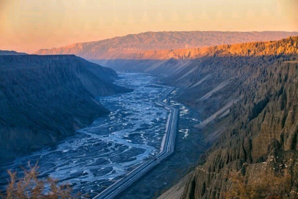 从开朗罕见的戈壁向着天山山脉驶进,进山后一齐雪山相伴,山势荆棘,急弯斜坡,其中点缀着瀑布、湖泊。