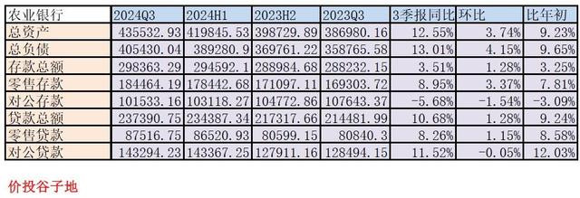 2024年三季报涌现,总钞票43.55万亿,同比客岁同时增长12.55%。其中贷款总额23.74万亿,同比客岁同时增长10.68%。总欠债40.54万亿同比客岁同时增速13.01%。其中进款总额29.84万亿,同比增速3.51%。更多的数据请参考表3: