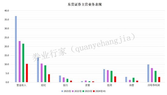 兼并利润表清爽,本年上半年东莞证券交易收入和归母净利润区别下降5.35%和17.02%。主交易务中,经纪业务、投行业务和信用业务均未达到2023年全年的一半。