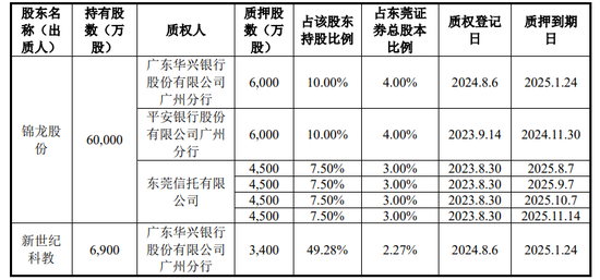 行家谨防到,东莞证券近期完成了2024年面向专科投资者公开荒行次级债券(24东莞C1)。发布于本年11月25日的召募讲明书载明:锦龙股份质押刊行东谈主东莞证券股份算计30,000万股,占东莞证券总股本的比例为20.00%,占其所抓东莞证券股权的比例为50.00%。质押的主要原因系为其融资提供质押担保,融资款项主要用于补充流动资金、偿还告贷等。