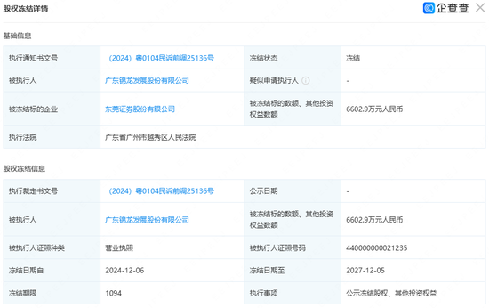 锦龙股份相称强调,“上述东莞证券股份的冻结未对公司的日常贪图产生关键不利影响。”