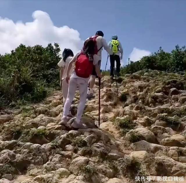 只见在视频中爬山的路很侘傺并不好走,身为家中主心骨的爸爸霍启刚,则是肃静走在临了,看管着细君和孩子。