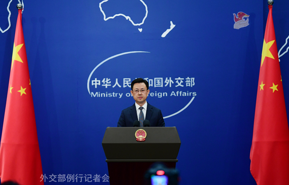 4月13日,社交部发言东说念主郭嘉昆主执例行记者会。