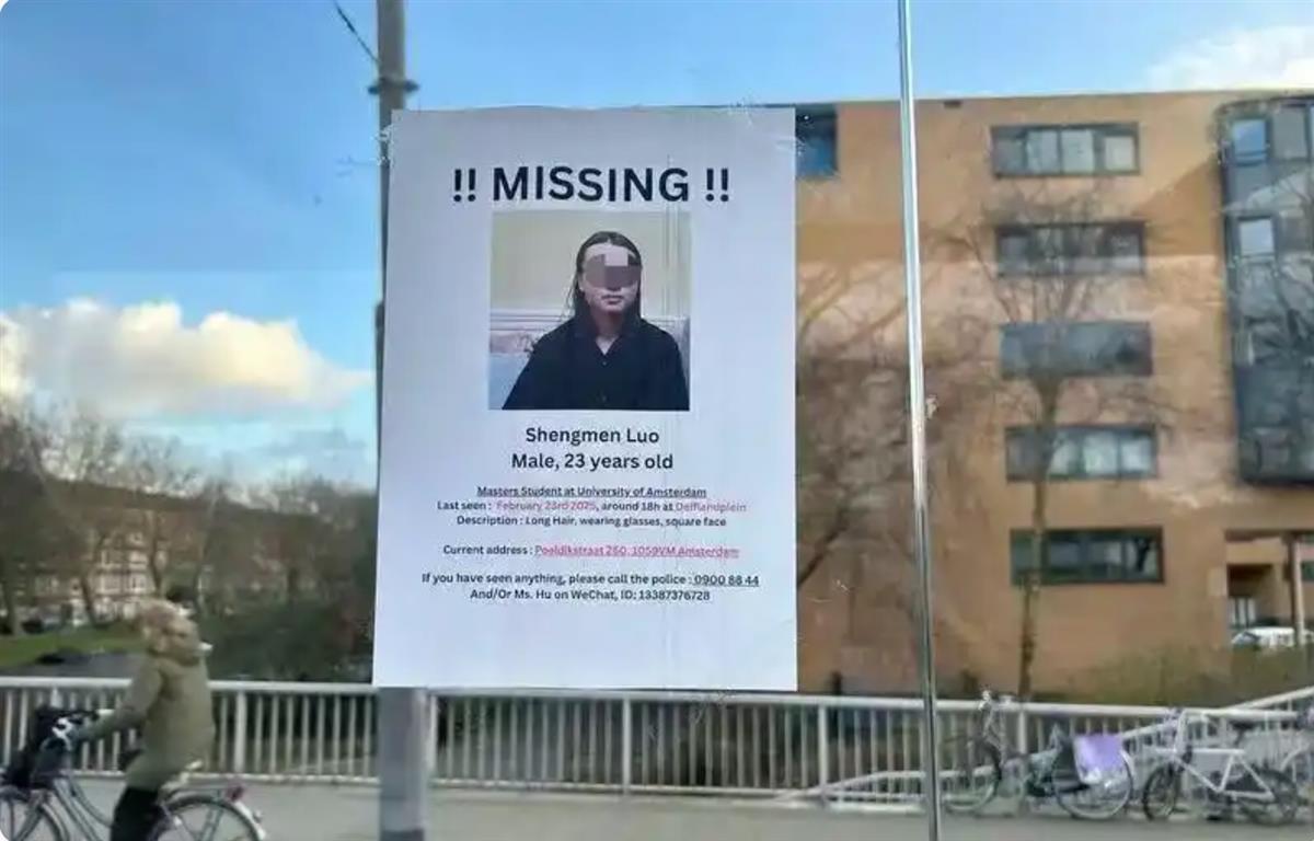荷兰留学生Lina向极目新闻记者先容,她和罗生门上的是吞并所大学,这所阿姆斯特丹大学在该国名按序二,罗同学所住公寓诚然是在校外,但当地的顺次景象是很好的。罗同学失联后,其所属院系曾发布邮件寻东谈主,电子高傲屏运转播放罗生门的失散信息,并命令公众提供任何筹办其下降的痕迹,同学们也在外交媒体上发布寻东谈主缘由,并在校园内张贴传单。3月12日,Lina给极目新闻记者转来荷兰当地媒体的报谈高傲,警方发言东谈主默示,当今已将此案列为膺惩失散案件,出于隐痛警方未深远更多细节,仅默示存在一些令东谈主担忧的迹象。