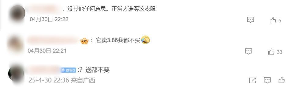 不外也有部分网友抒发不招供::“正常东谈主有谁会买这种衣服啊?”、“白送齐不要。”