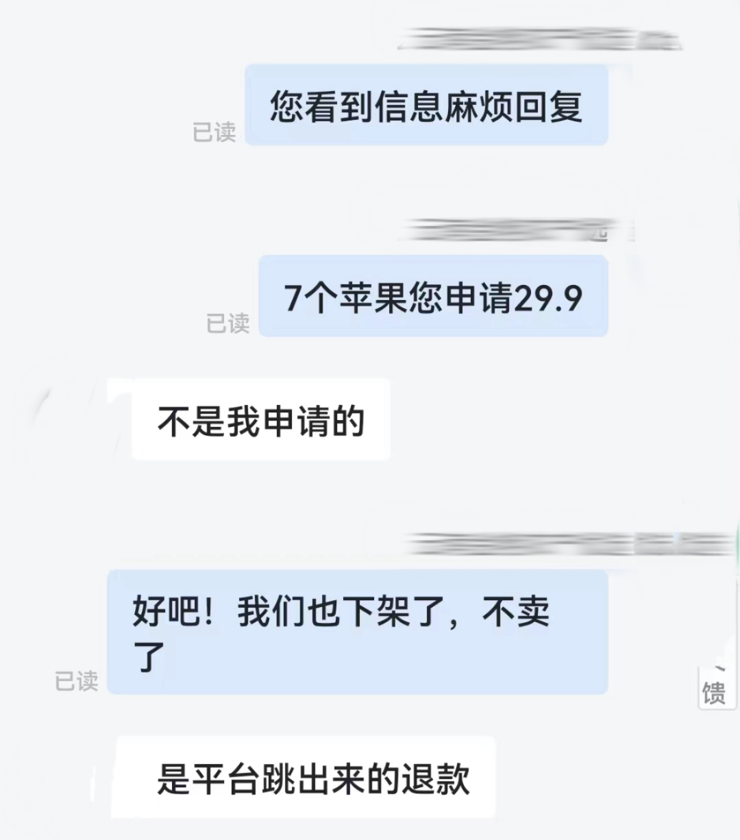 “不敢卖了。”7月23日这天,金家明又一次把自家果蔬农居品在某电商高下架,他已记不清这是半年来第几次主动下架了,困扰他的同样是“仅退款”。
