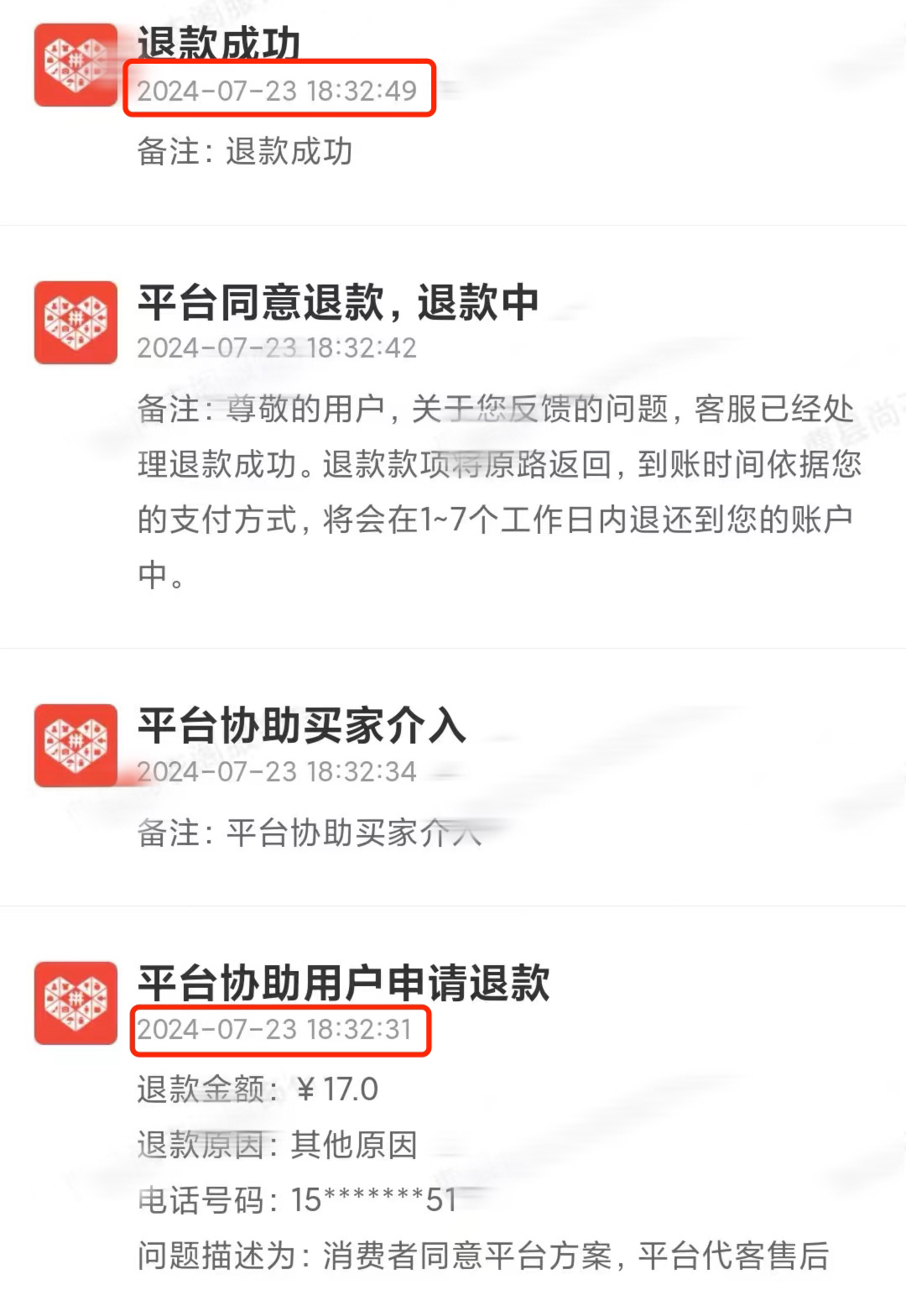 从央求退款到退款得胜,只用了不到1分钟的时刻
