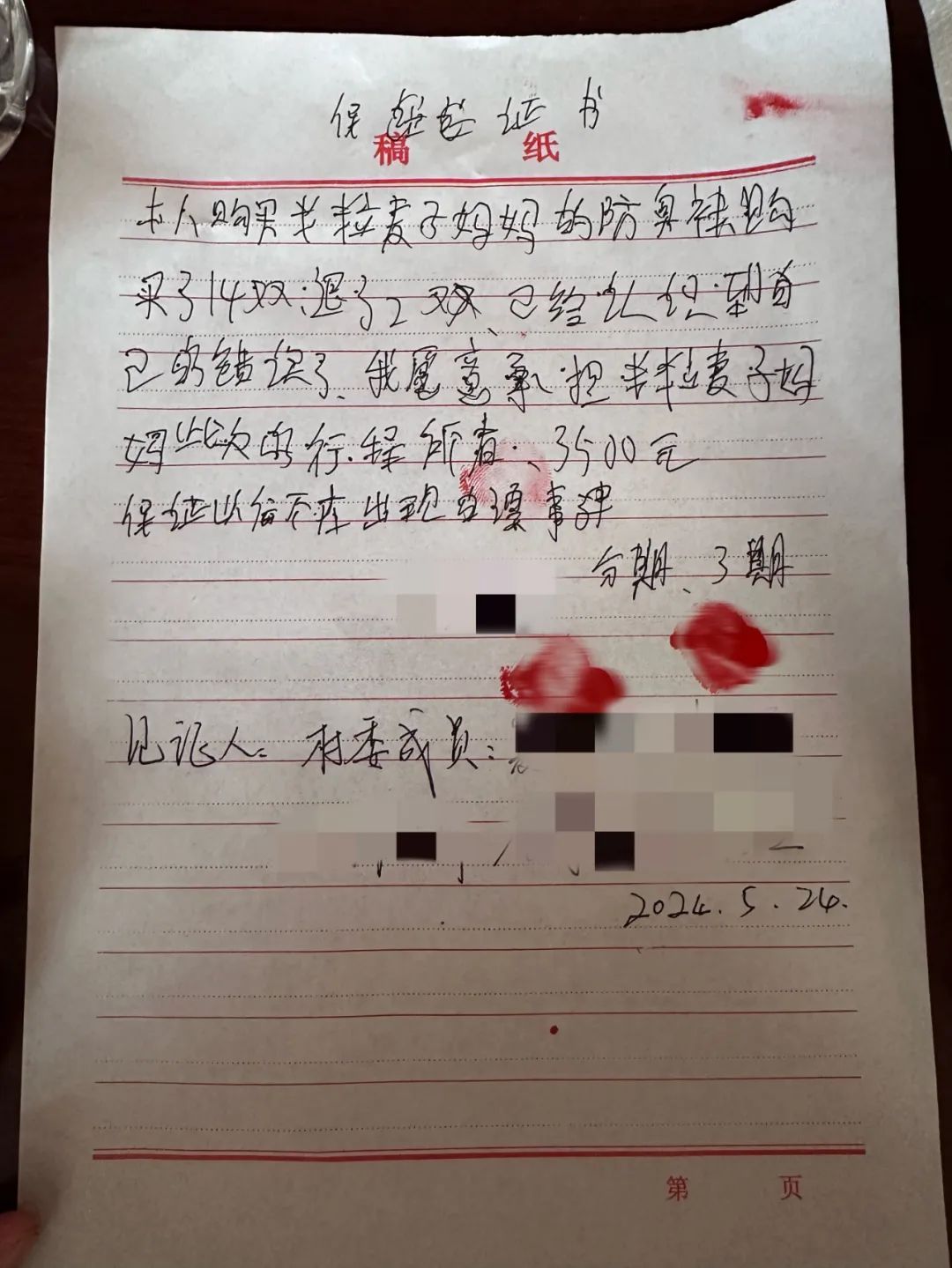 找上门时,当事人在地里收蒜,下单的是他的老婆,一个农村宝妈。在快递点、村委和民警的协助下,两边达成联合,对方写下不再白嫖的保文凭,要回8双袜子的米麦麦称愿小惩大戒。