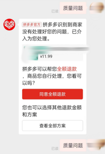 在买家央求售后之后,平台会自动给买家弹窗提供“仅退款”有打算