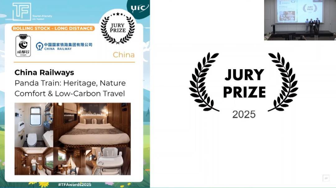 10月16日,海外铁路定约(UIC)在法国巴黎举办首届“游客友好型铁路奇迹与体验奖”受奖庆典。中国铁路成皆局集团有限公司四川成皆铁路海外商旅集团有限公司请教的“熊猫专列”在评比中脱颖而出开云提款靠谱官方入口,荣获“资料旅游友好型列车及车上奇迹(行程多于2.5小时)‘评审团格外奖’”。